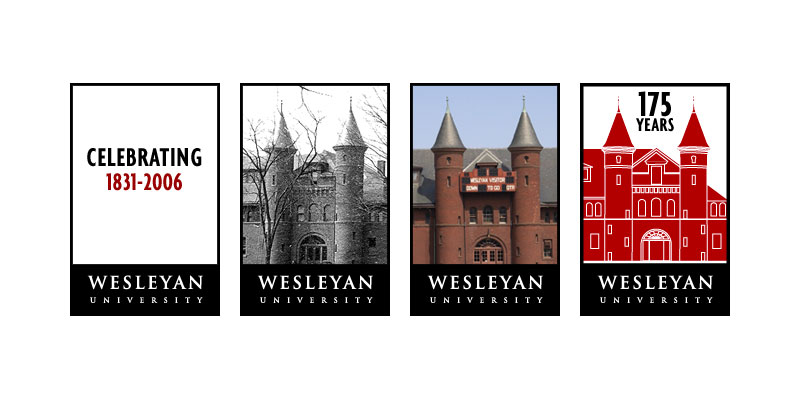 The 2005-06 academic year marked the 175th anniversay of Wesleyan University, located in Middletown, CT. I designed the logo that served to mark the occasion on everything from the University's homepage, to banners on two prominent buildings on campus, to a knitted quilt presented to guest speaker Bradley Whitford, class of 1981.